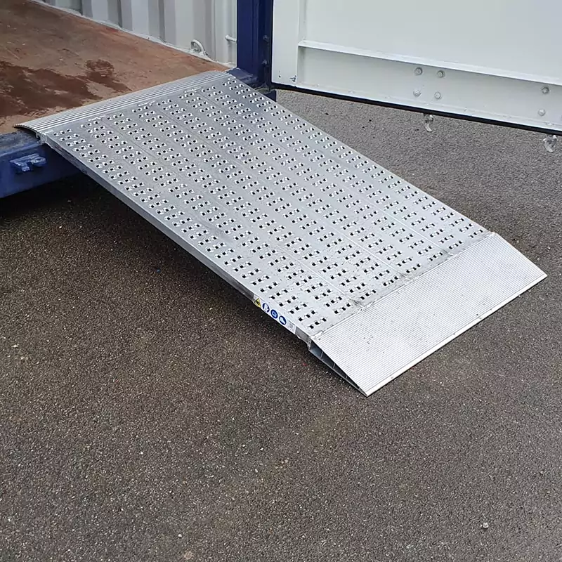 Discuta su contenedor marítimo o de almacenamiento fácilmente gracias a esta rampa de acceso al contenedor marítimo extraíble. Este accesorio de carga y descarga es perfecto para profesionales que usan transpaletes, carros manuales o vehículos de ruedas.